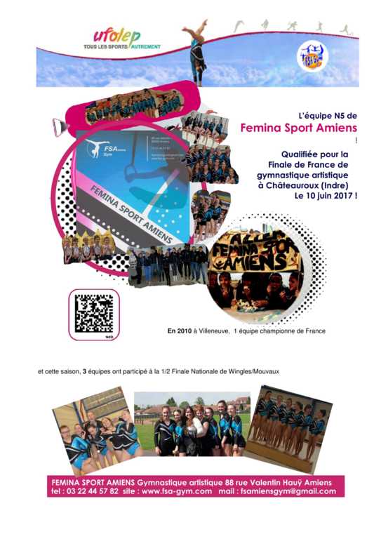 Bravo à l'équipe N5 composée d' Alexia, Camille Da, Elia, Emma,Léa et Margot et qui a décroché la qualification pour la Finale Nationale à Châteauroux du samedi 10 juin 2017 Et bravo aussi aux coachs Muriel et Marie ainsi que Loubna, juge