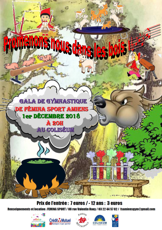 Les gymnastes du club, garçons et filles, petits et grands à partir de 2ans, loisirs et compétitions, vous offriront une véritable soirée de gymnastique agrémentée de chorégraphies, des décors, des costumes, des jeux de lumières et de musique et le tout sur un thème défini; cette année, "Promenons nous, dans les bois ...."