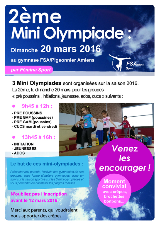 La gymnastique Compétition GAF GAM ou Loisir de 15 mois aux adultes