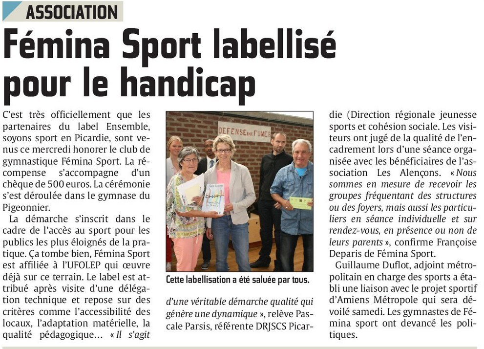 Remise du Label "Ensemble soyons sport en Picardie" - sport adapté - par la Direction Régionale de la Jeunesse et Sport et Cohésion Sociale et le Comité Régional Olympique et Sportif de Picardie pour l'accueil de personnes en situation d'handicap