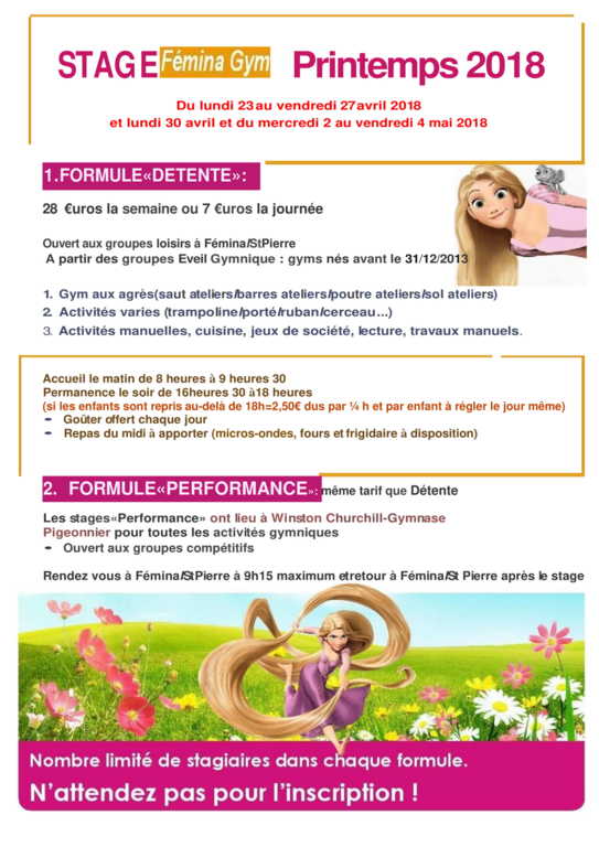 Inscriptions ouvertes pour les stages Printemps 2018 Nombre de places limitées !!!!